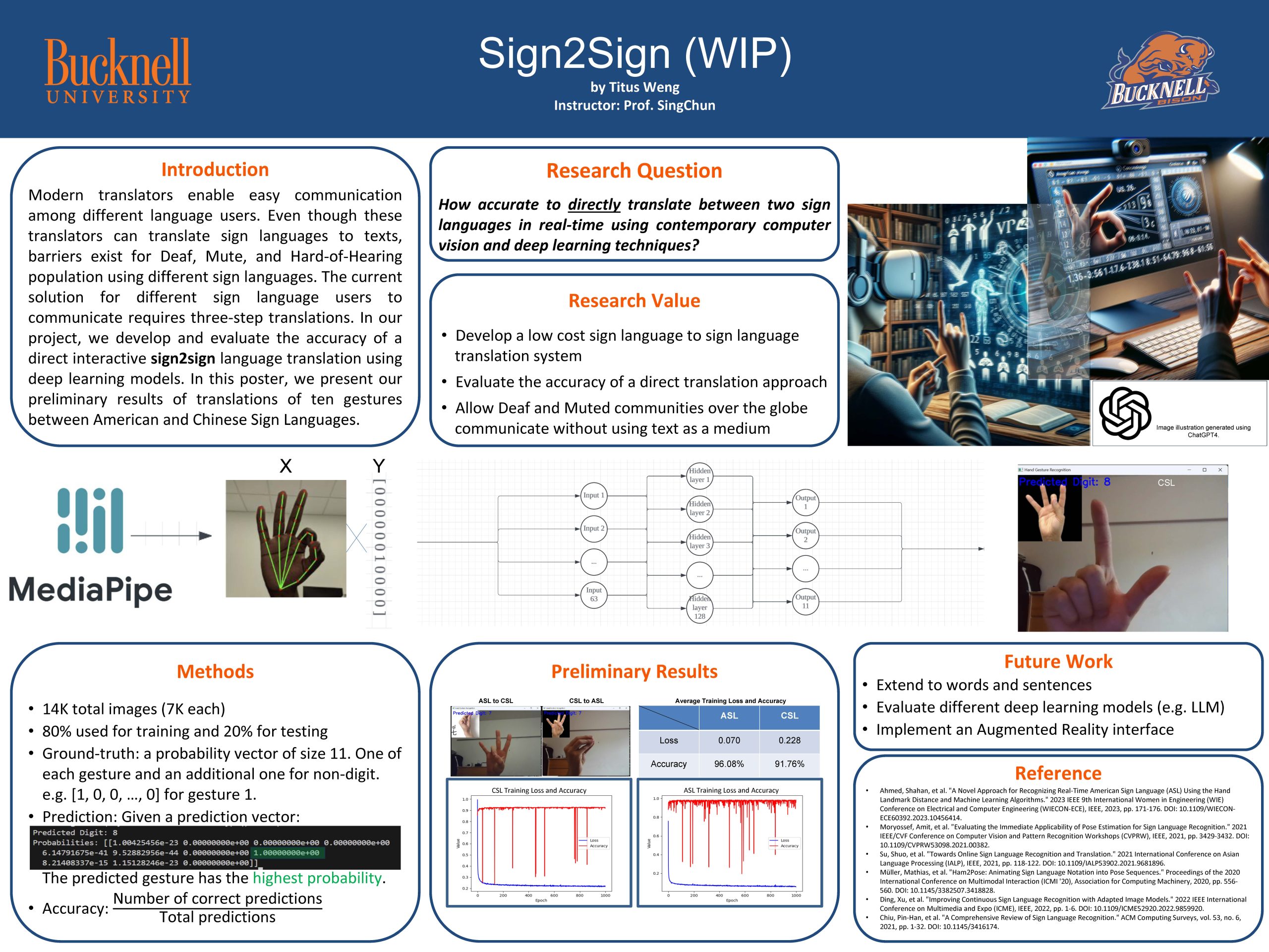 At the core of human engagement is communication. While technological advances enable convenient translation for different language speakers to communicate, millions of Deaf, Mute, and Hard-of-Hearing people still face immense hurdles due to the lack of accessible tools to facilitate direct sign language translation. Our project aims to build a Sign2Sign direct immersive translation tool using WebXR that takes input from any accessible camera and produces output in WebXR-supported platforms. This paper presents the preliminary results of direct translation between ten gestures of American and Chinese Sign Languages.